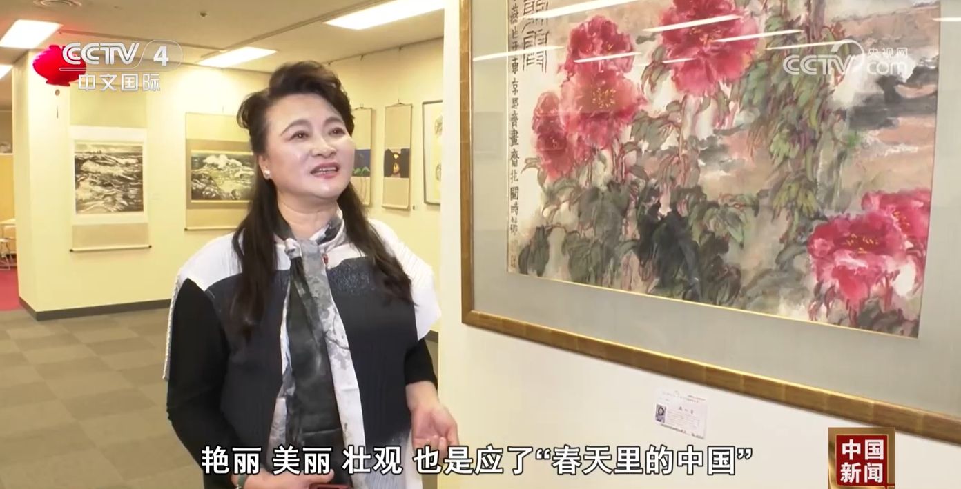 中国国家画院研究员、燕和中国画学会会长王小燕:牡丹花整体就有一种春天的感觉,艳丽、美丽、壮观,也是应了“春天里的中国”,应这个景。