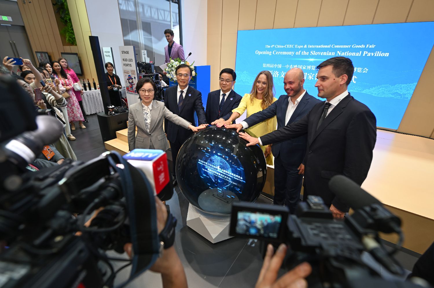 5月22日,第四届中国—中东欧国家博览会暨国际消费品博览会在浙江宁波开幕,本届博览会主宾国之一斯洛文尼亚国家馆开馆,以“绿色、创意与智慧”为主题,集中展示特色优质商品、旅游资源及人文风情。(图片来源:本文图片均自中新社)