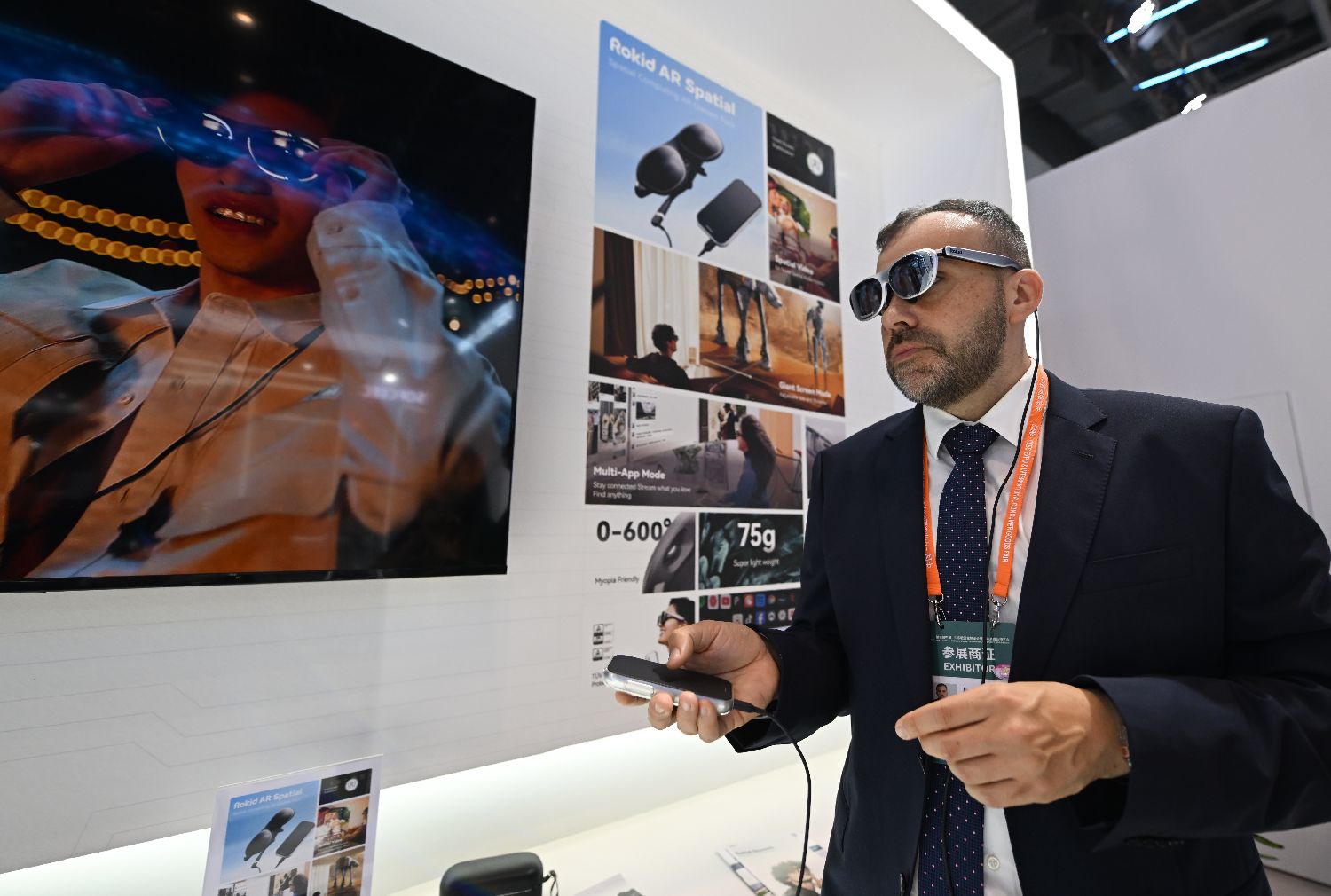 5月22日,“数智中东欧”展区内,参观者体验智能眼镜。