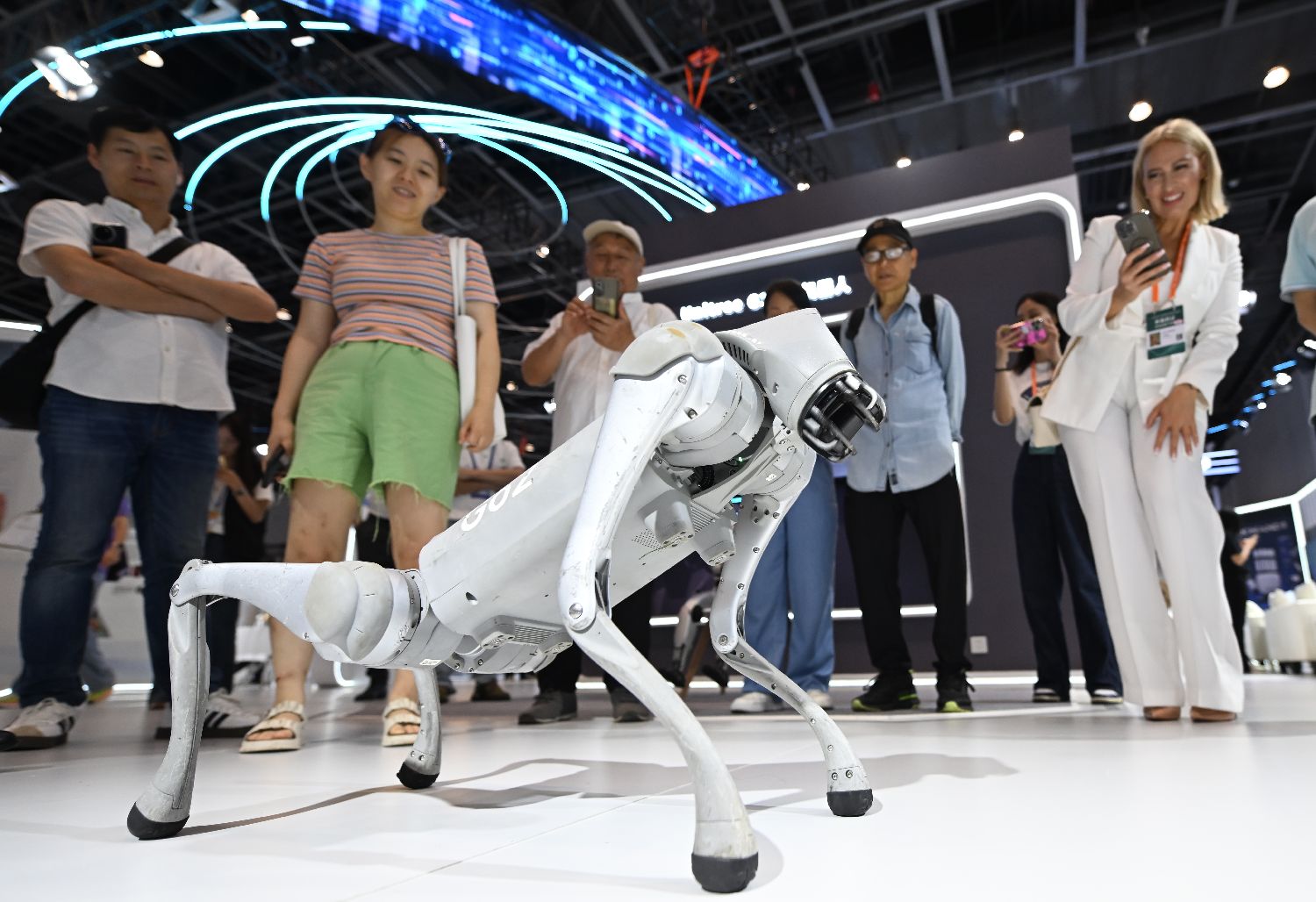 机器狗在“数智中东欧”展区进行动作展示吸引中外参观者。