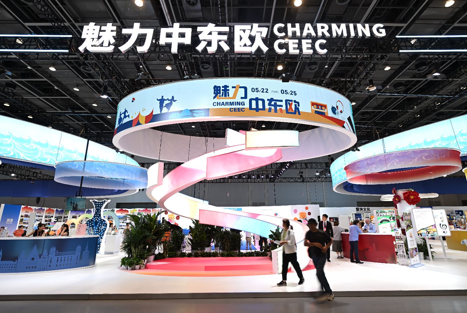 5月22日,民众参观“魅力中东欧”展区,首次设立的“魅力中东欧”展以书、艺、画、印、游等板块呈现文化交融。