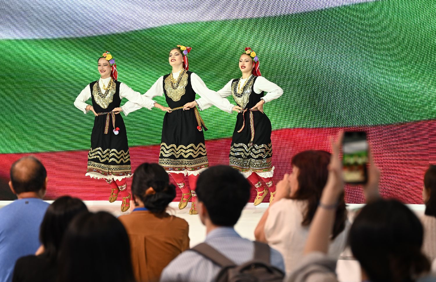 5月22日,“魅力中东欧”展区,保加利亚舞蹈表演吸引参观者。