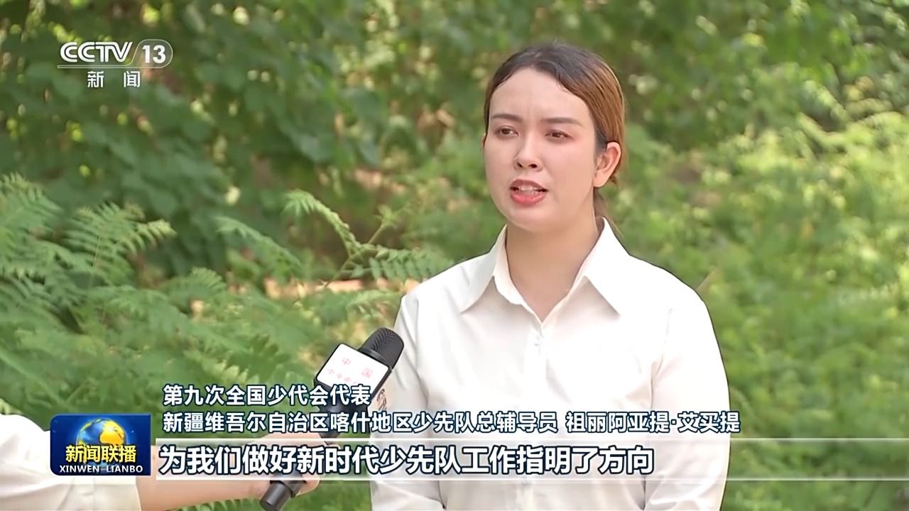 第九次全国少代会代表新疆维吾尔自治区喀什地区少先队总辅导员祖丽阿亚提·艾买提:习近平总书记的贺信,为我们做好新时代少先队工作指明了方向。我们将坚持和加强党对少先队工作的全面领导,牢牢把握立德树人根本任务,以铸牢中华民族共同体意识为主线,激发少先队员对党和国家的热爱,让他们在实践中坚定理想信念,不断增进“五个认同”,早日成为担当民族复兴大任的时代新人。