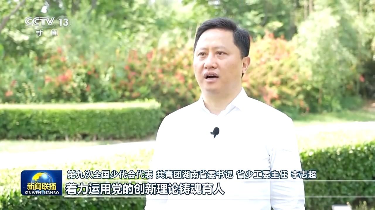 第九次全国少代会代表共青团湖南省委书记省少工委主任李志超:我们将聚焦少年儿童政治启蒙和价值观塑造主责主业,着力运用党的创新理论铸魂育人,引导广大少先队员听党话、跟党走,争当爱党爱国、勤奋好学、全面发展的新时代好少年,切实把少先队组织建设成广大少年儿童健康成长的大学校。