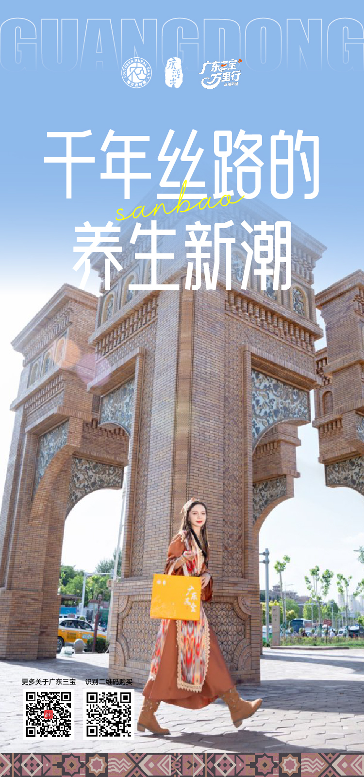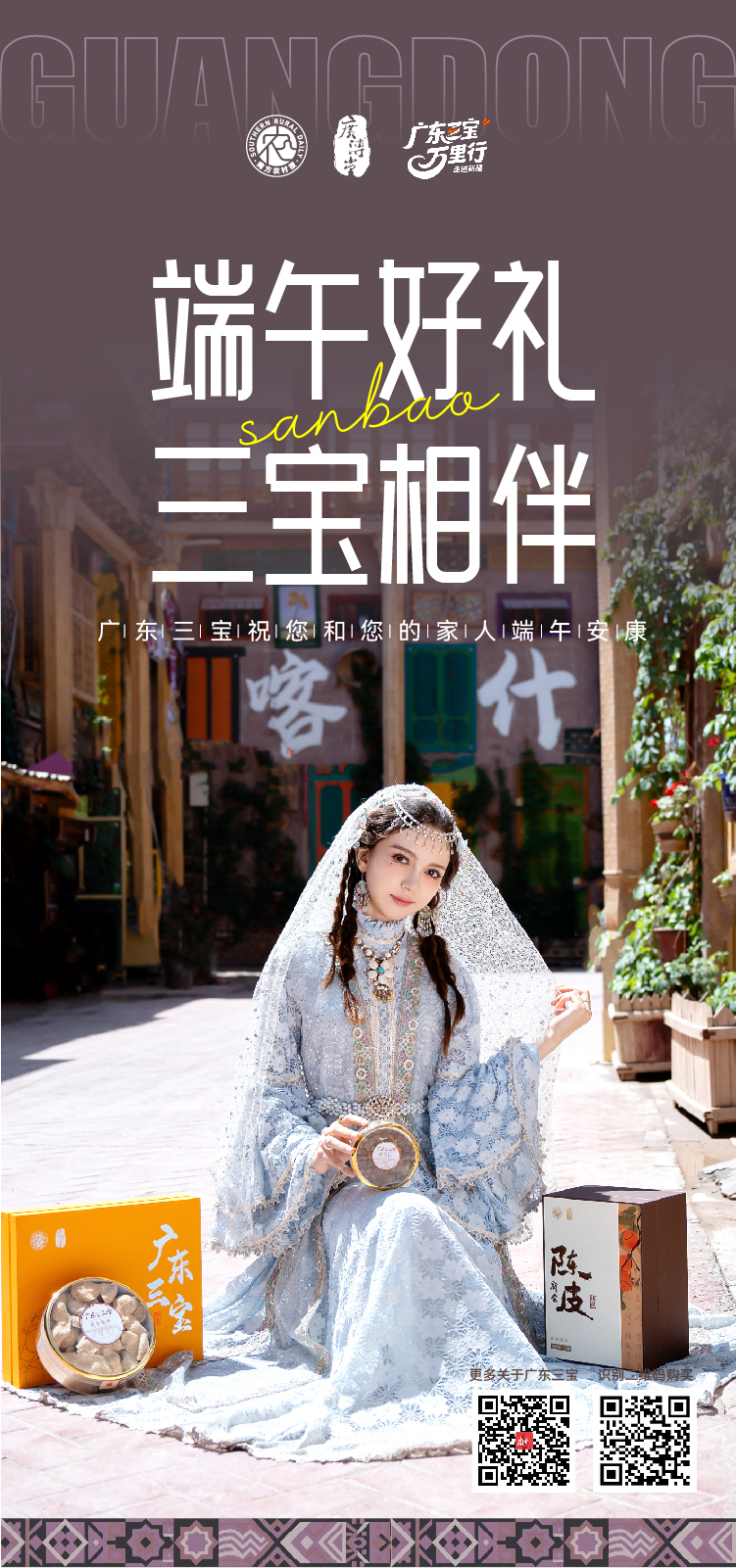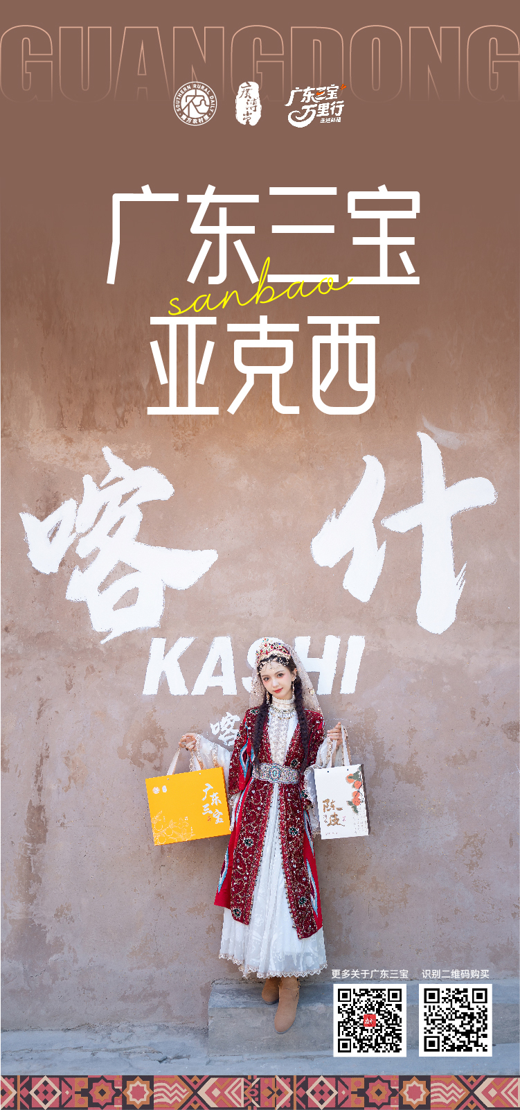 广东三宝,是南方农村报打造的“广东人自己的手信”,由新会陈皮、化橘红、春砂仁组合而成,是岭南地区久负盛名的中药材和食材。“亚克西!”在喀什首日亮相,广东三宝当即吸引游客群众观看和品尝,好评不断,更有“古丽”倾情“打call”。