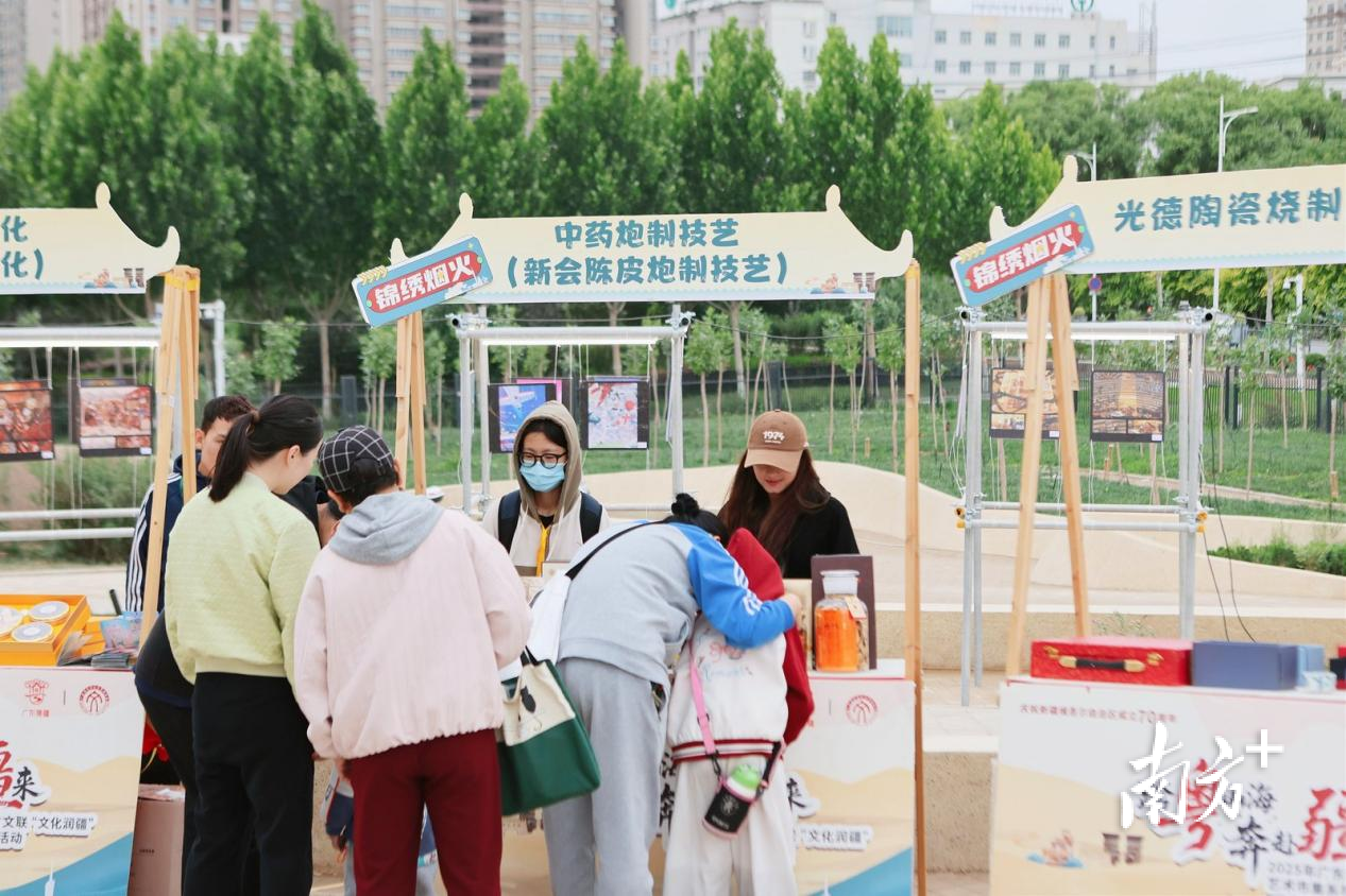 “跨粤山海奔赴疆来”2025年广东省文联文艺志愿者“文化润疆”艺术市集系列活动火热开展,广彩、广绣、西关打铜工艺、潮州工夫茶艺等文化非遗落地边疆。广东三宝的登场,更是令人耳目一新。