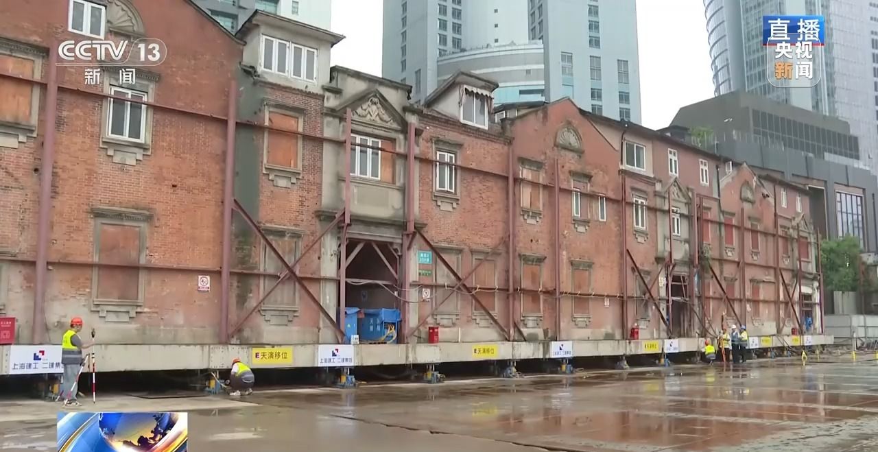 总台记者 宁婉婷:一走进张园东区,最醒目的连片石库门就是我身后的“华严里”。通过一段延时画面可以看到整个建筑归位的过程,从5月19日启动归位以来,“华严里”以日均10米的速度“行走”,现在,整体归位已经完成。