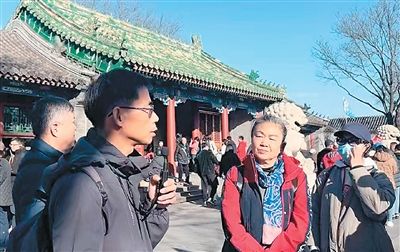 “走读北京”走进恭王府。图为张传玖(左二)在为参加活动者讲解。