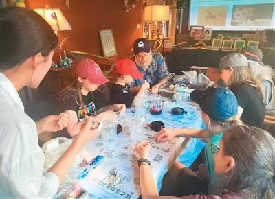 来自美国的一家人在93号院博物馆体验非遗文化。