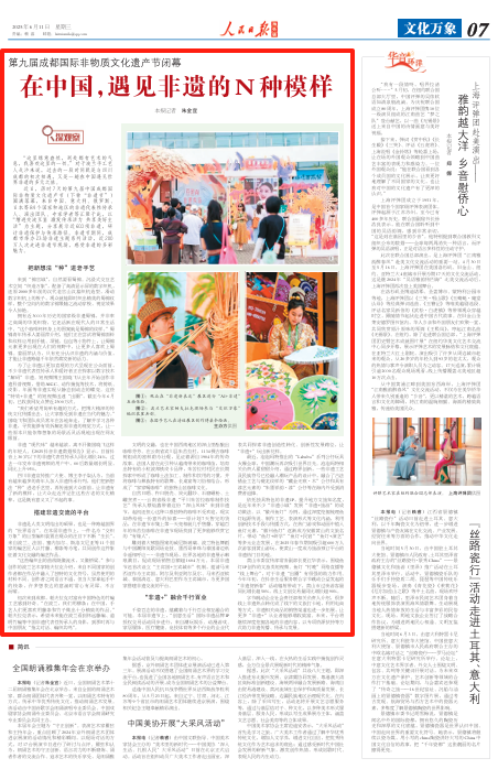 近日,历时7天的第九届中国成都国际非物质文化遗产节(下称“非遗节”)圆满落幕,来自中国、意大利、俄罗斯、日本等84个国家和地区的非遗代表性传承人、演出团队、专家学者等汇聚于此,以“增进交流互鉴 激发传承活力 共享美好生活”为主题,分享展示近600项非遗,研讨非遗保护与传承路径。非遗节期间,成都市举办23场非遗主题系列活动,近200万人次走进非遗节现场,感受非遗的多彩魅力。