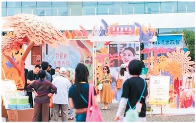 观众在“非遗新表达”展区进行“AI+非遗”互动体验。