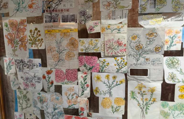 作为汇丰纸行开业首展,“花时间”纸上作品展当日开幕。孙浚良是策展人,他的母亲郭荣妹2014年突发脑梗后,便开始每天在各种各样的纸上作画。绘画的主体大都是各种花朵,各色各样,充满想象。