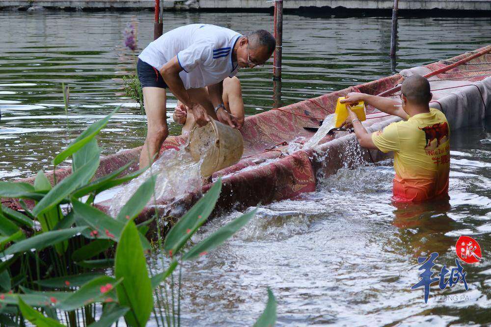 让湖水和泥浸泡坤甸木龙船,防止龙船被晒裂干和氧化