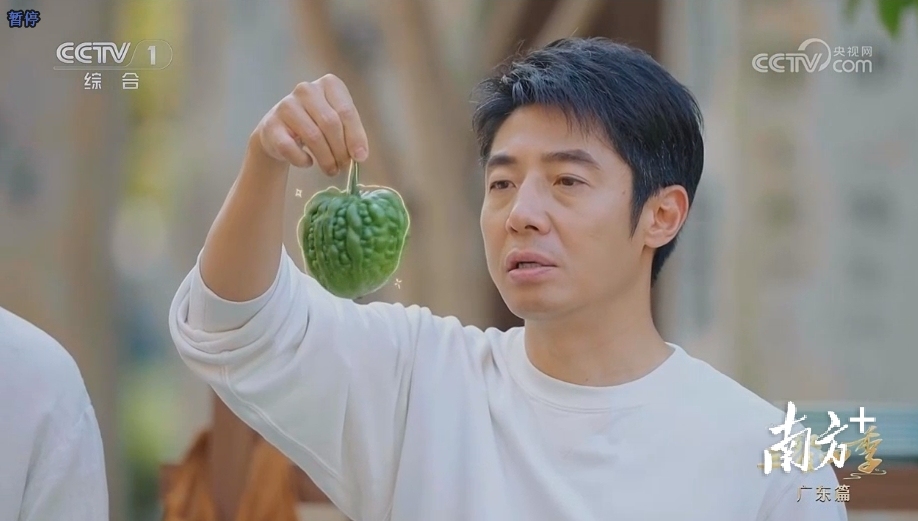 央视《三餐四季》栏目,撒贝宁等明星嘉宾倾力推荐杜阮凉瓜。视频截图南方+郑琦拍摄