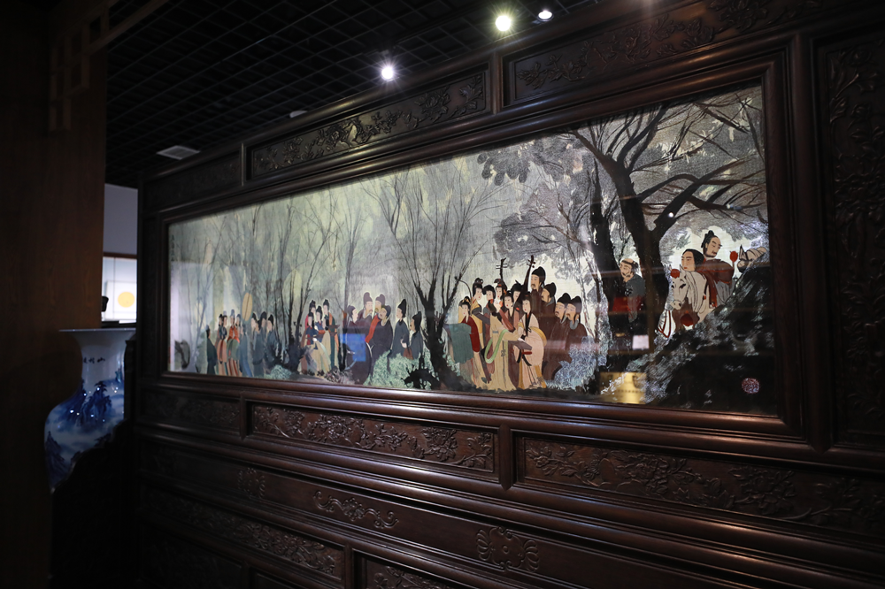 6月18日,江西省新余市夏布绣博物馆展出的夏布绣双面屏风《丽人行》。(图片来源:文中图片均来自中新社)