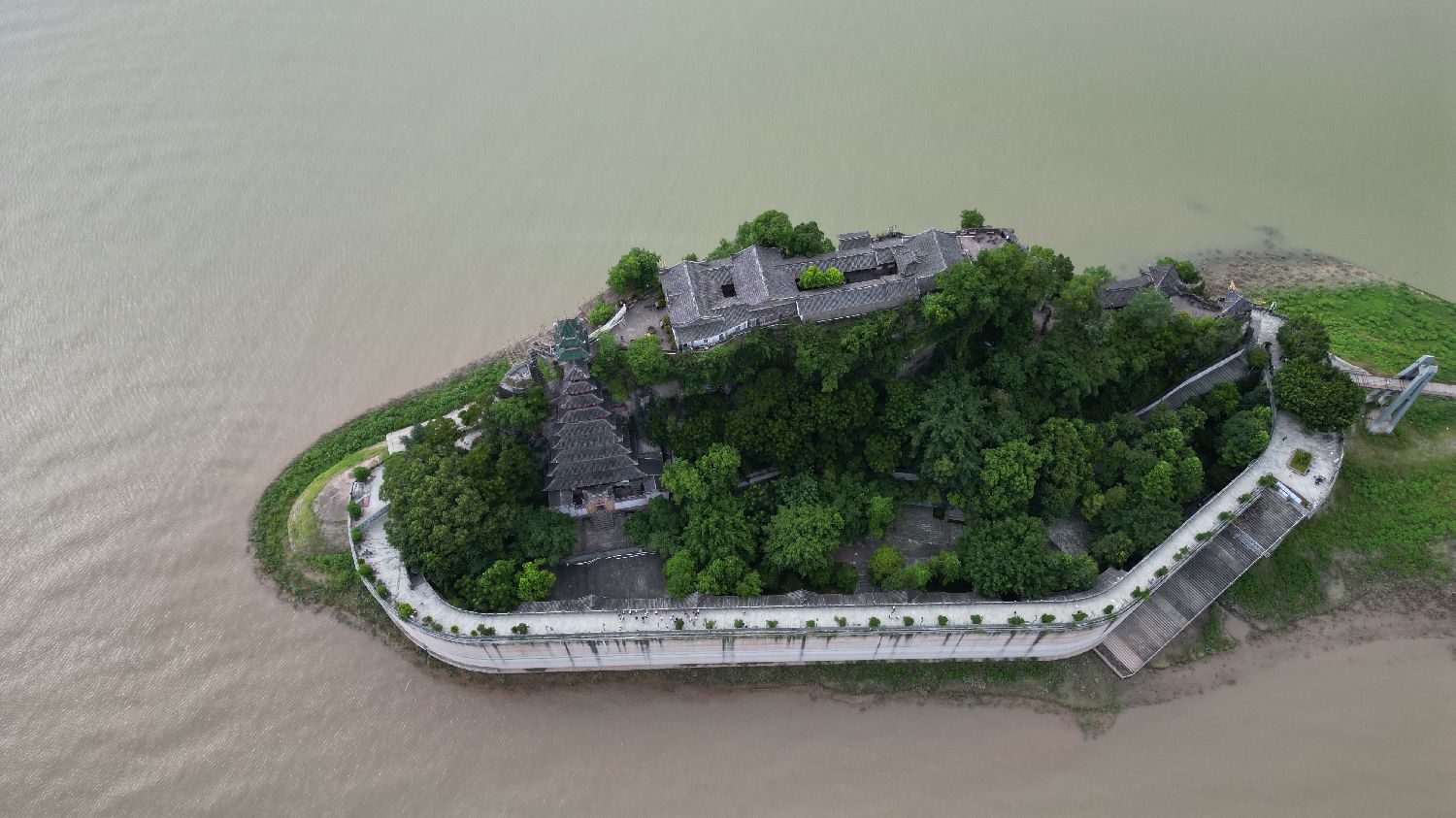 三峡蓄水,石宝寨采用“修建围堰、就地保护”保护工程方案,于2005年动工,2009年竣工开放,建成后的石宝寨四面环水,成为一处巨型江中盆景,深受中外游客青睐。