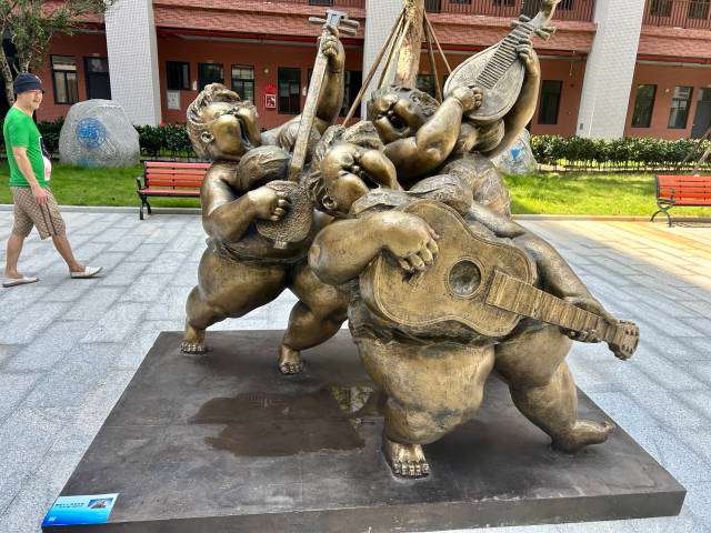 据了解,此次展出大小展品30余件,涵盖玻璃钢、铜、不锈钢等多种材质,既有《孙中山》《关山月像》等展现历史与人文风采的作品,也有《童趣》《雨打芭蕉》等充满生活气息的创作,还有《凤凰》《龙凤呈祥》等蕴含传统吉祥如意的佳作。这些作品以立体艺术的形式,连接起阳江深厚的乡土文化底蕴与校园美育新征程,不仅丰富了校园文化生活,更助力提升学生的审美素养和创造力,为培养全面发展的人才注入艺术活力。