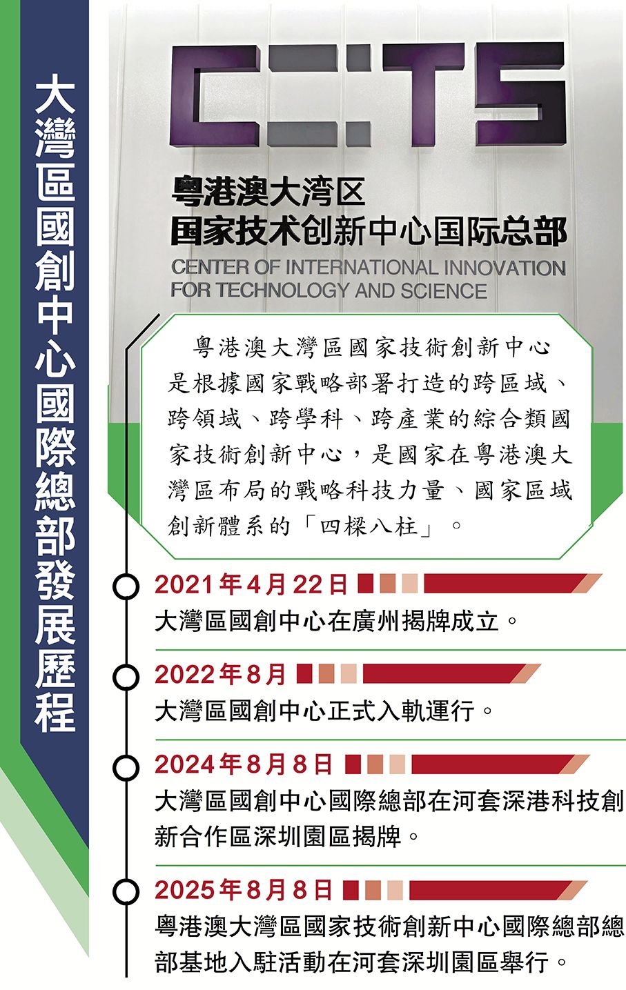 (香港文匯報記者胡永愛)8月8日,正值《河套深港科技創新合作區深圳園區發展規劃》印發兩周年之際,粵港澳大灣區國家技術創新中心國際總部(以下簡稱「國際總部」)總部基地入駐儀式在河套深港科技創新合作區深圳園區(以下簡稱「河套深圳園區」)舉行。「自成立以來,我們非常注重國際合作的推進,而尤其重要的一部分是與香港的協同、合作。」國際總部主任劉仁辰在活動現場表示,「目前,我們對接了多家香港頂尖大學與科研機構,與香港大學幹細胞轉化研究中心、嶺南大學跨學科學院、香港先進生物醫學儀器中心3家簽署了合作備忘錄,推動項目立項。」其中,由香港大學主導的生物愛滋病治療性DNA疫苗項目,有望於18個月後上市。