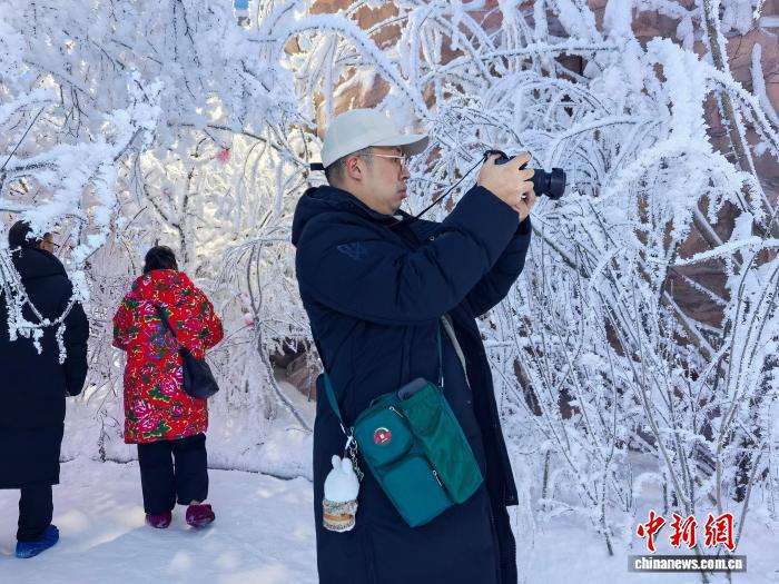 陈林在雾凇实验室拍摄雾凇美景。 苍雁摄