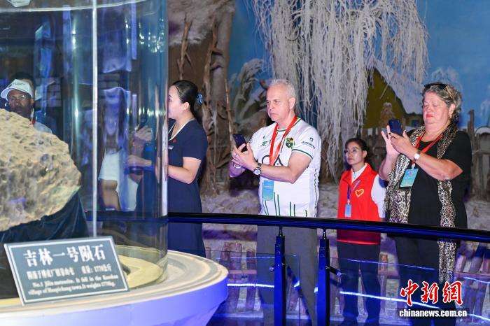 9月12日,吉林省吉林市,多国驻华使节、政府官员、城市代表参观吉林一号陨石。 李显鹏 摄