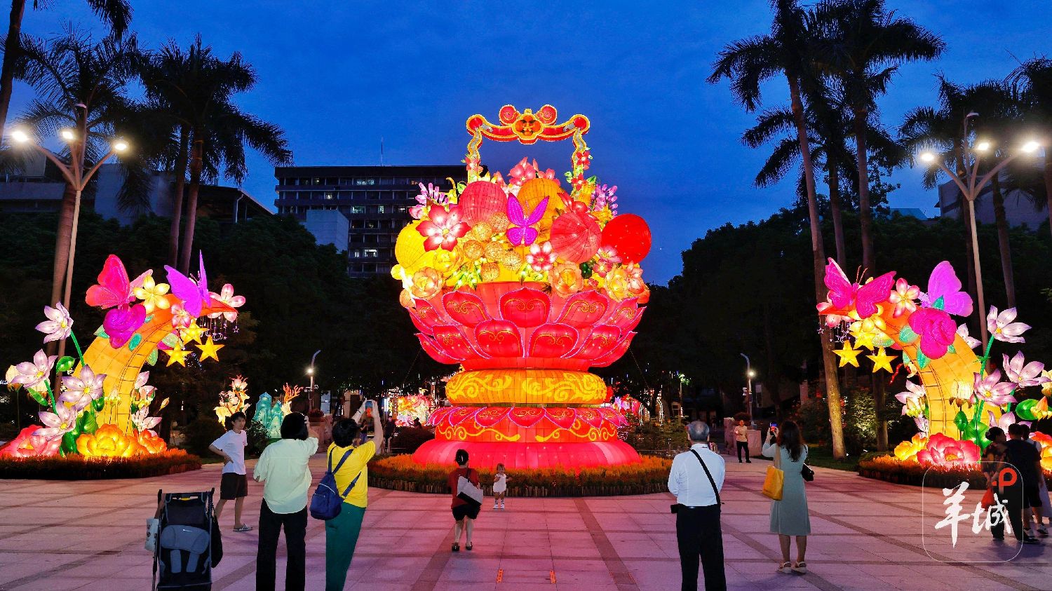 采用同样布展手法的灯组还有《花开映月耀湾区》《活力满溢》。其中,《花开映月耀湾区》花灯与大湾区景致相映成趣,而各地市花的融入让彩灯更添灵韵,澳门的莲花灯瓣层层叠展,深圳的簕杜鹃以紫红焰态绽放,中山的菊花雅致高洁。