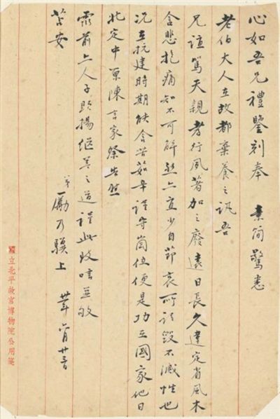 【收信人】那志良(1908—1998),字心如,1925年1月进入故宫工作。1939年2月,由于陕西汉中遭轰炸,故宫第三批西迁文物奉令向四川峨眉县转移,6月17日全部运往峨眉,驻峨眉办事处由那志良担任主任。