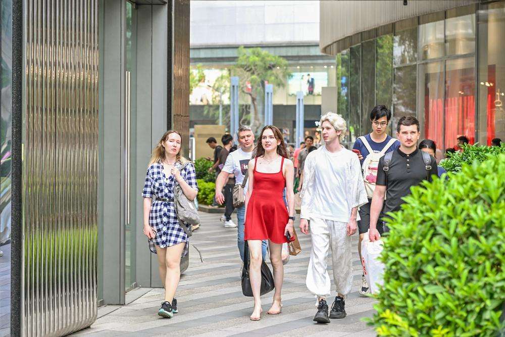 据了解,为方便境外客商获取信息,各大商圈均提供多语种服务。天環在APM地铁出口设置三语咨询站,K11等商场的工作人员也能用流利英语提供服务。