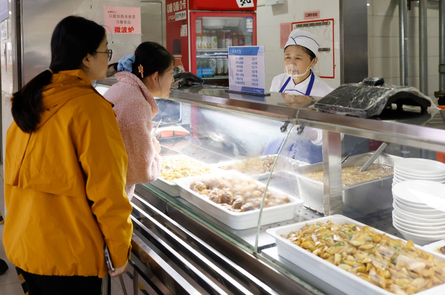 当天上午10点40分,首批师生便直奔“无锡有点甜”的窗口点菜;11点过后,窗口前已排起长龙,食堂里弥漫着温润而甜香的气息。从“酱排骨”“银鱼炒蛋”“肉酿面筋”到“萝卜丝酥饼”“香菇干蒸鸡”“酸辣汤”等,多个地道锡帮菜肴端上餐桌。