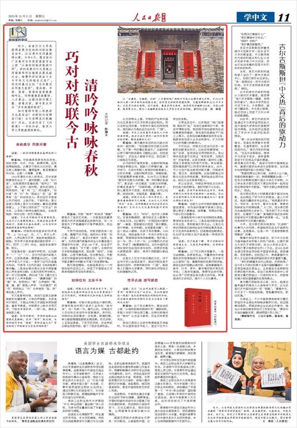 记者:对联不仅是一种文学形式,更蕴含着独特的文人雅趣,比如文人之间的“对句”互动。这种雅趣在当代社会是否还有体现?它对个人文化素养的提升有何意义?