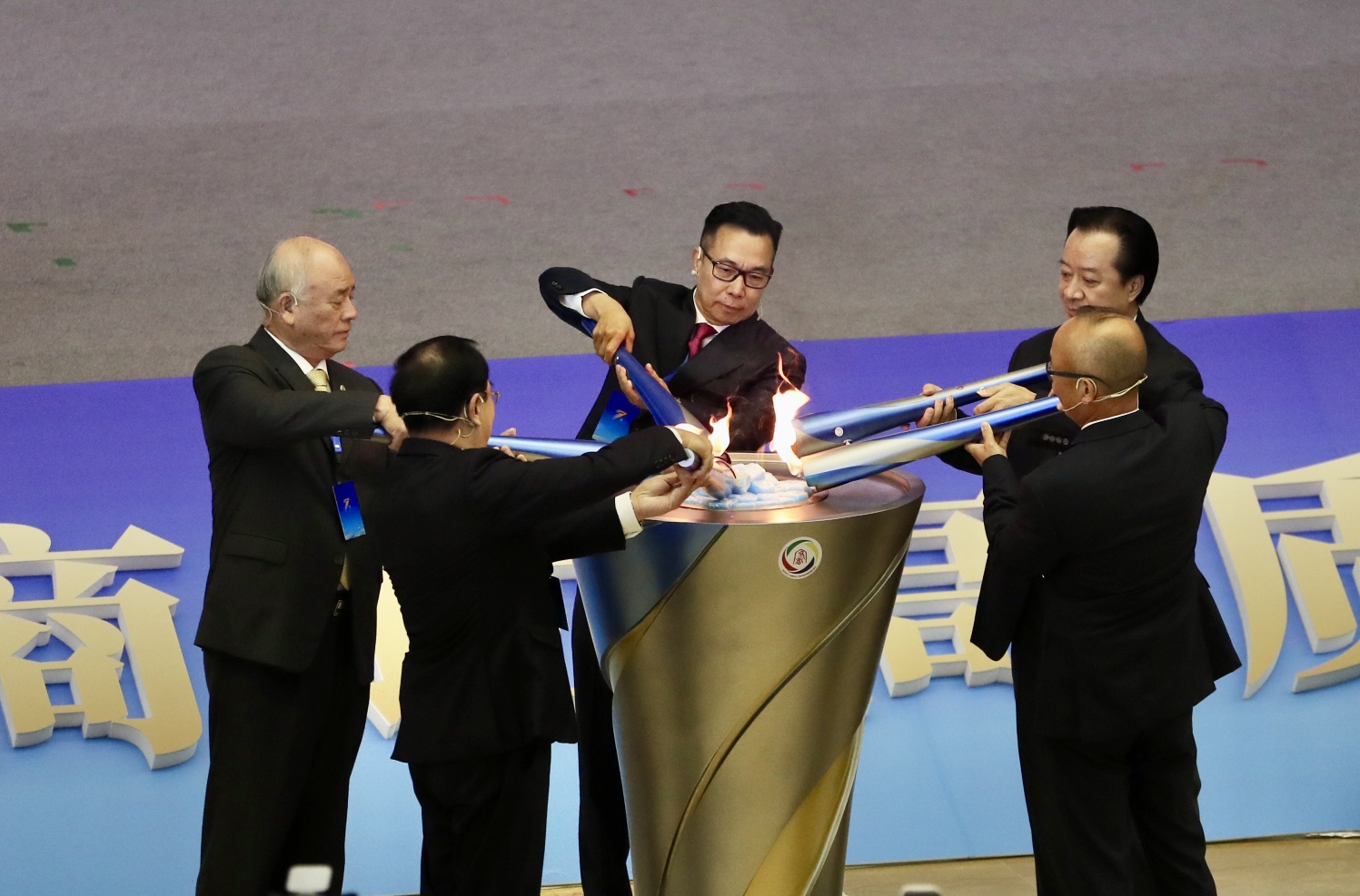 「同心聚焰·薪火相傳」主火炬點火儀式拉開了大會開幕式序幕。火炬由5位海內外客商代表、客籍僑領及青年代表共同點燃,象征著全球客商同心同德、攜手前行的精神火炬代代相傳,也寓意著梅州與全球客商在新時代背景下深化合作、共促發展的美好願景。
