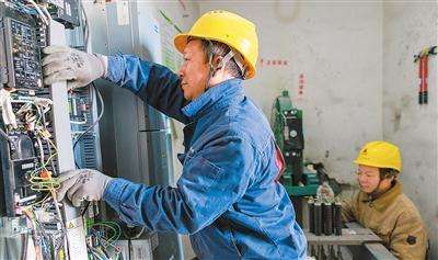 近来,新疆乌鲁木齐加快住宅老旧电梯更新工作,切实解决人民群众急难愁盼问题。图为专业维保人员在乌鲁木齐市天山区一小区电梯机房安装控制柜线路。孙振嵩摄(人民视觉)