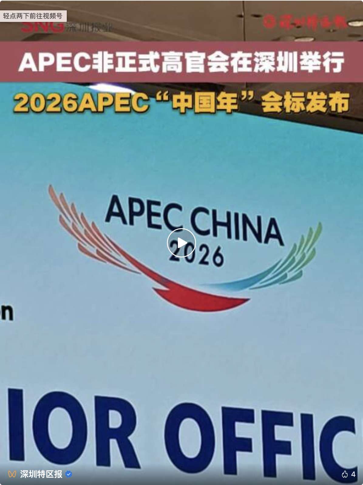 12月11日至12日2026年亚太经合组织非正式高官会在广东省深圳市举行这是中国担任2026年APEC东道主主办的首场活动拉开了APEC“中国年”序幕