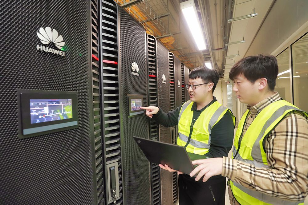 图为河北人工智能计算中心工作人员对训练机房进行日常维保。(图片来源:陈童 摄)