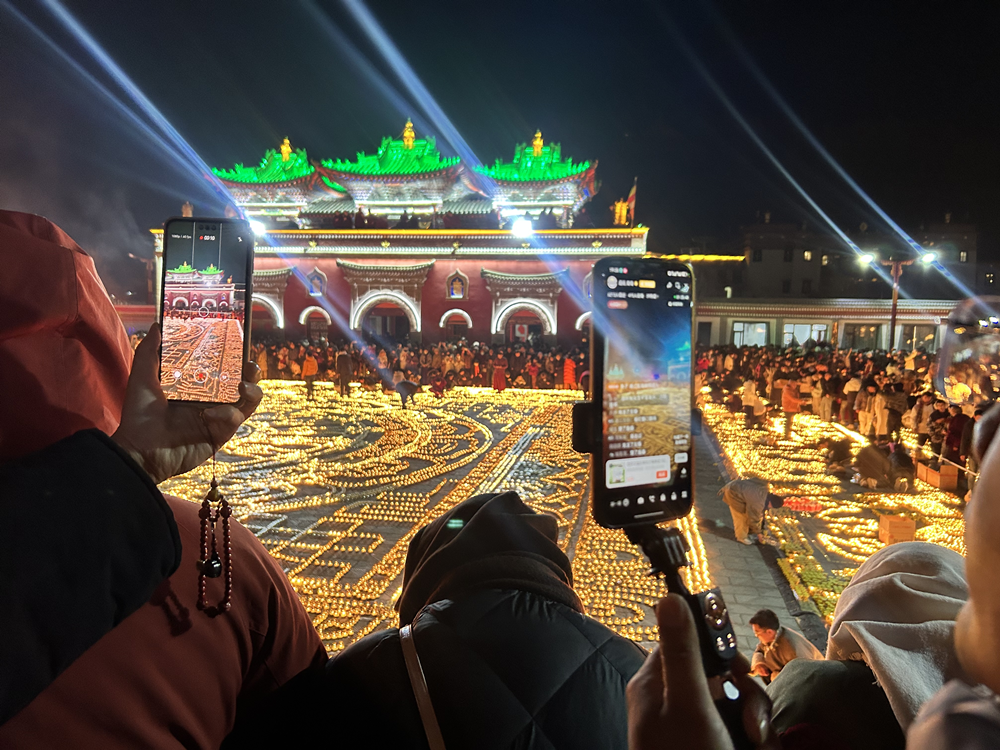 现场不少年轻人在社交媒体平台直播,让古老的燃灯传统与现代科技相遇。