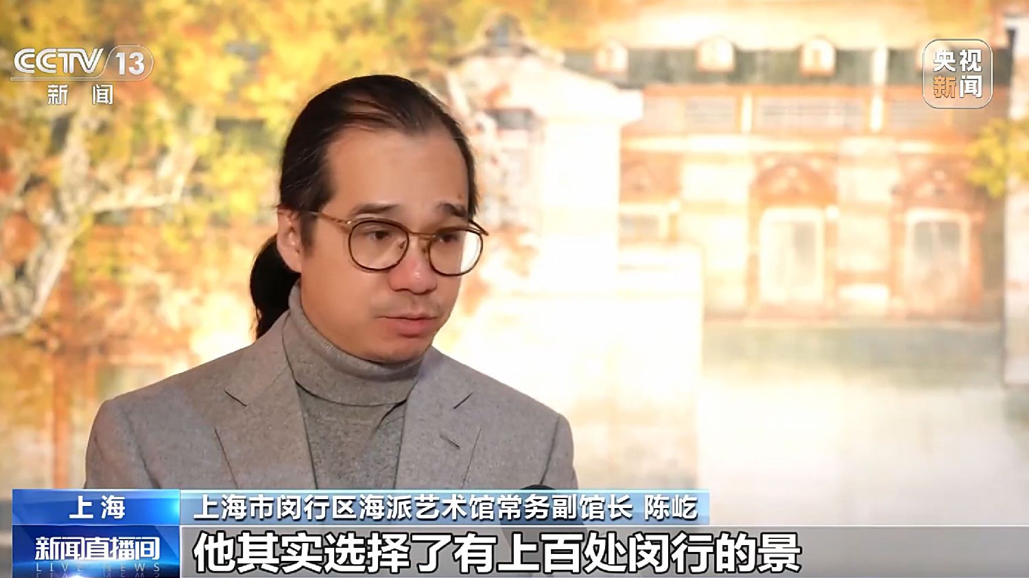 上海市闵行区海派艺术馆常务副馆长陈屹:他其实选择了有上百处闵行的景去创作、去写生,最后呈现的是近20幅左右。而且在这个展览开始前,他新鲜出炉了四件作品,是代表了现在闵行比较新的发展后的一个变化。