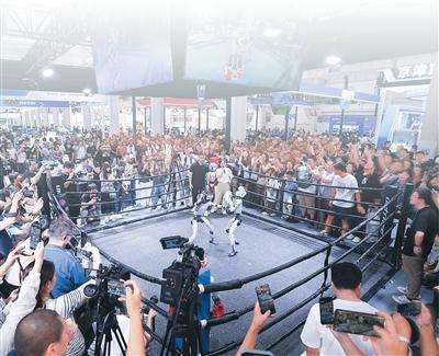 参观者在2025世界机器人大会上观看机器人拳击表演。陈晓根摄(人民视觉)