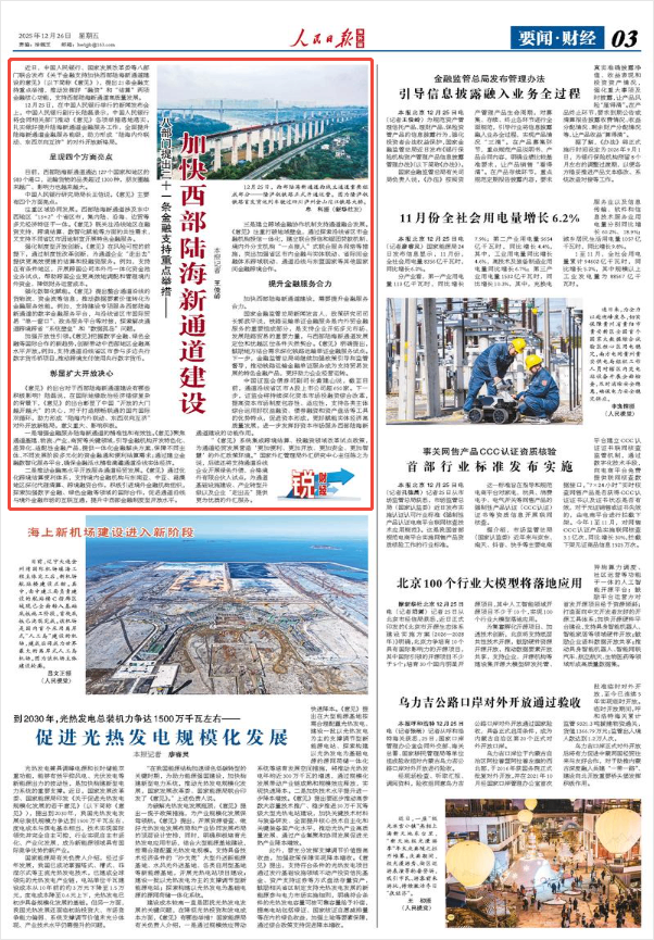 加快西部陆海新通道建设,需要提升金融服务合力。