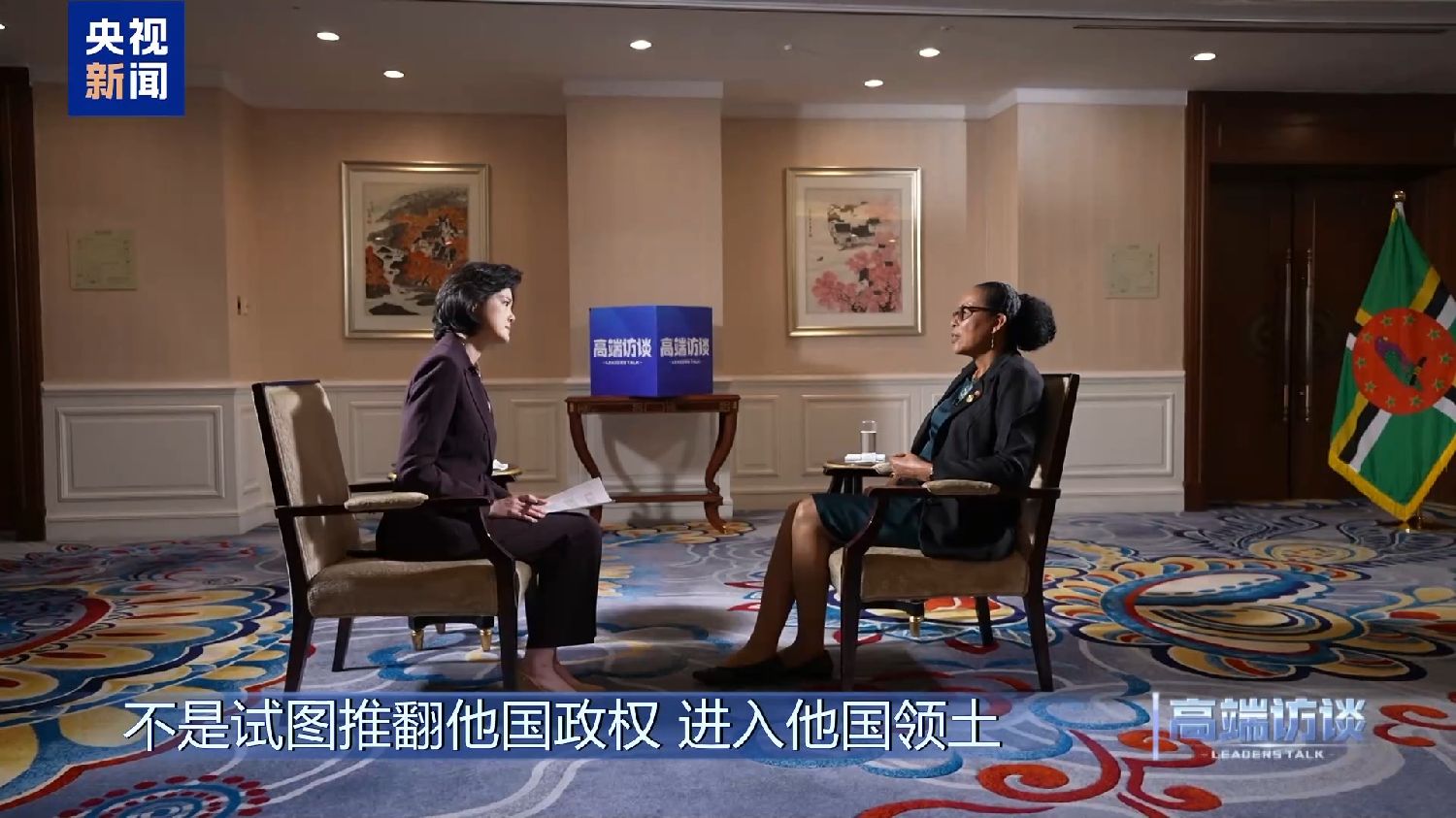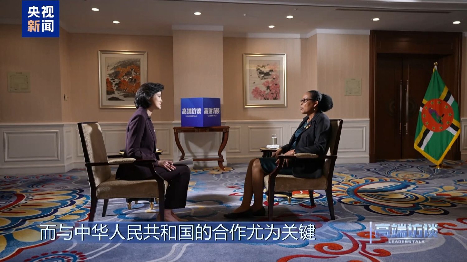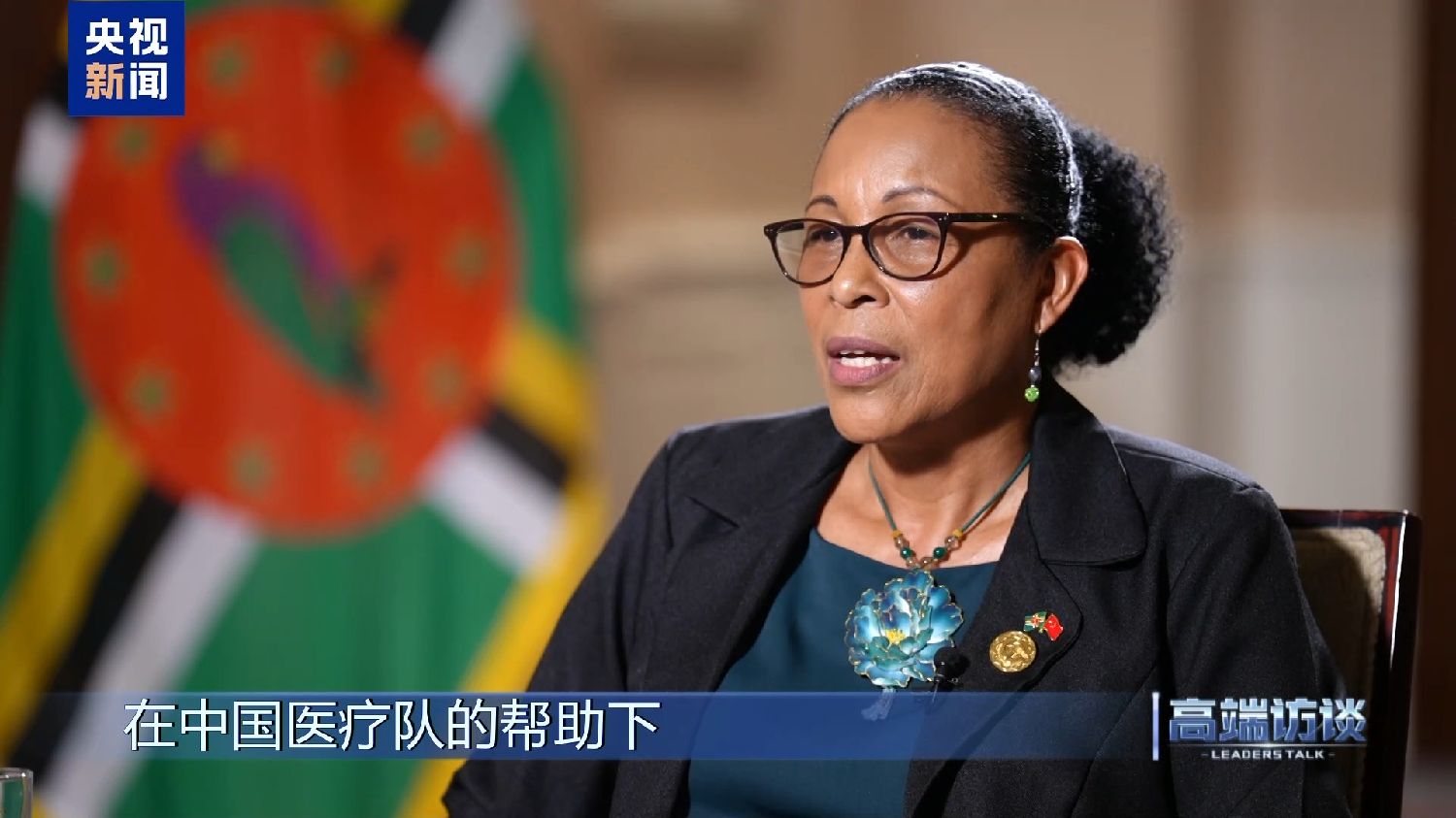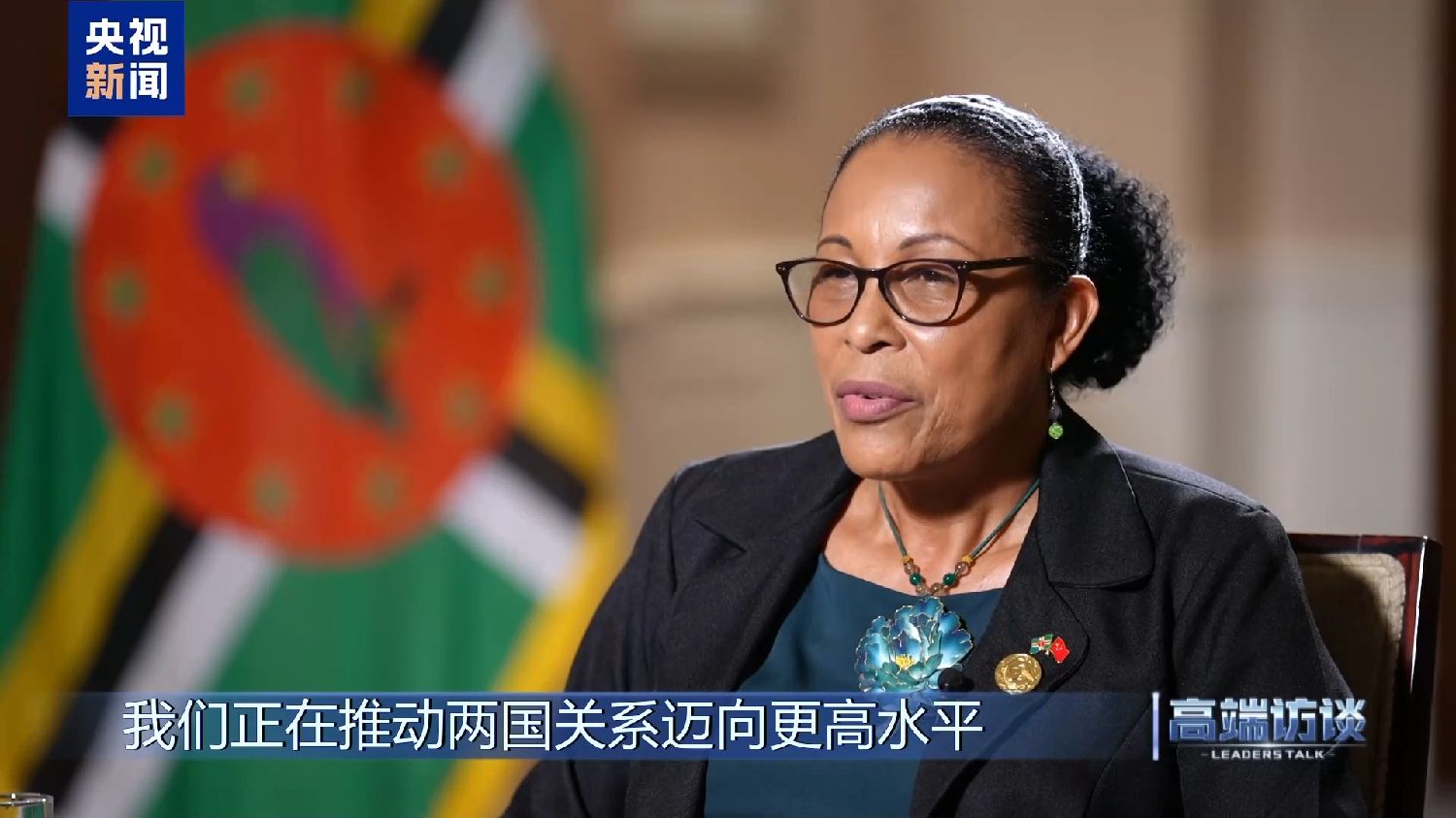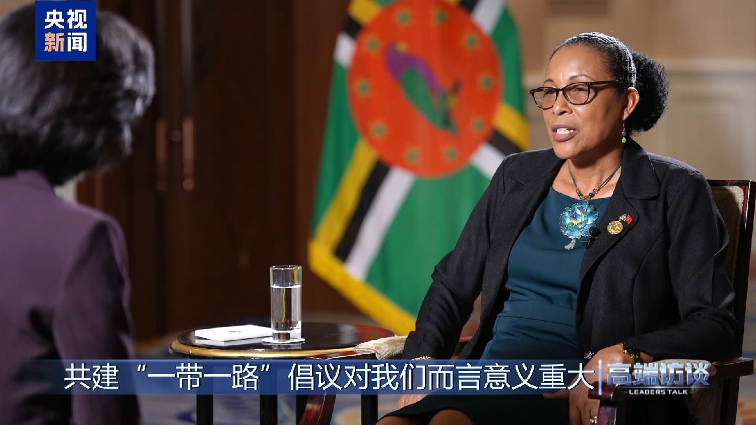 多米尼克总统伯顿接受《高端访谈》专访。她说,在多米尼克遭遇危机的时刻,中国的支持发挥了重要作用。她表示,共建“一带一路”倡议对多米尼克意义重大。