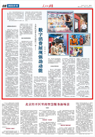数字消费包括数字产品消费、数字服务消费、数字内容消费以及通过数字渠道实现的消费。下单即时配送、选购智能家居、在智慧商圈购物、跟着“AI导游”参观博物馆……多样化的数字消费场景,越来越高频地出现在人们的日常生活中。作为消费新业态,数字消费不断拓展消费空间。