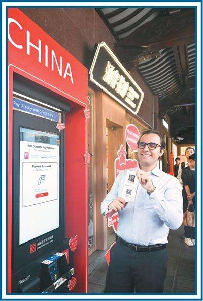 “Meet China”入境旅游数字消费大屏具备商品导购、故事化解说、多语种交互与境外银行卡便捷支付等功能。图为用户展示“Meet China”入境旅游数字消费大屏打印的购物核销单。新华社记者 陈浩明摄