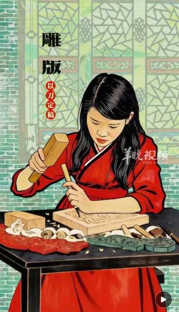 2006年,这项技艺入选首批国家级非遗名录。2024年12月,中国春节申遗成功,在全球发布的春节宣传片中,展现贴年画习俗时,采用的正是佛山木版年画的影像。非遗评审现场,中国代表团回赠各国代表的红包上,印着的也是佛山木版年画作品《金榜题名》。