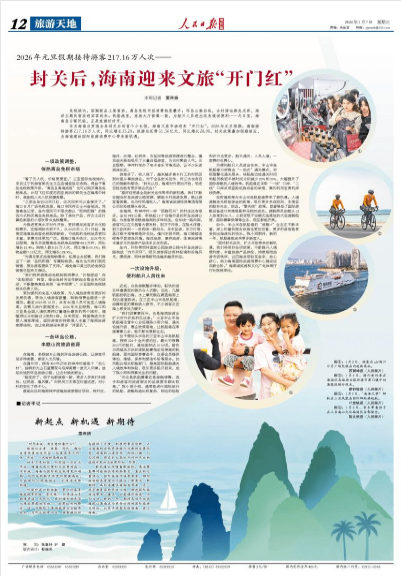 作为海南自贸港全岛封关后的首个小长假,海南文旅市场迎来“开门红”。2026年元旦假期,海南接待游客217.16万人次,同比增长25.2%;旅游总花费31.36亿元,同比增长28.9%。封关政策叠加假期效应,为海南建设国际旅游消费中心带来新机遇。