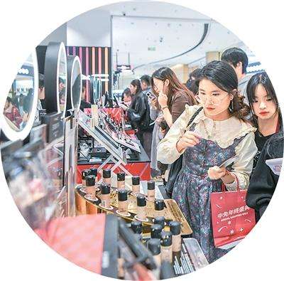 1月2日,游客在cdf海口日月广场免税店内选购商品。苏弼坤摄(人民图片)