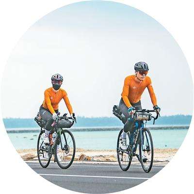 1月3日,骑行爱好者在海南环岛旅游公路琼海市潭门镇牛奶海路段骑行观光。蒙钟德摄(人民图片)