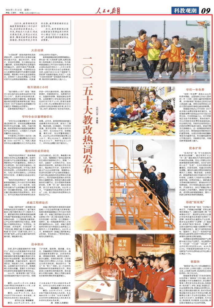 近日,教育部新闻办联合国家语言资源监测与研究中心推出“2025十大教改热词”,展现教育强国建设的生动图景。