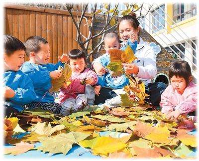 2025年11月6日,在山东省济宁市任兴托幼一体实验园,老师陪伴托育班的小朋友做游戏。