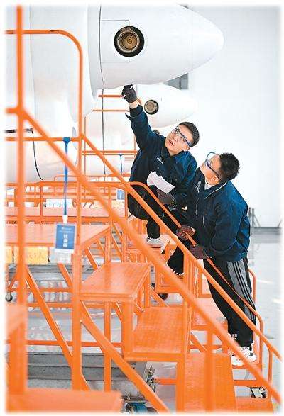 2025年12月18日,在位于江西省抚州市的江西航空职业学院,老师正在为学生讲解飞机发动机构造。
