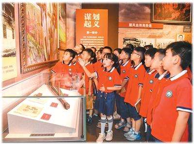 2025年9月4日,江西省宜春市铜鼓县秋收起义纪念馆,来自铜鼓县第二小学的“红领巾讲解员”在向同学们讲解秋收起义的光辉历史和革命先辈的红色故事。