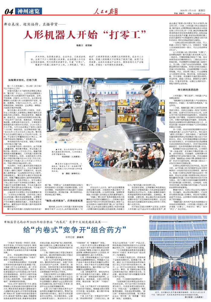 “随着机器人技术和产品逐步成熟稳定与本体成本持续降低,人形机器人有望走入更多领域‘打零工’,并逐步从‘零工’变为‘员工’。”张立华说。(徐佩玉 祝莹晰)