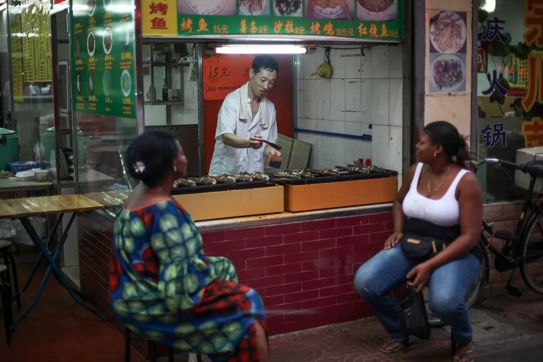 小北路的一家非洲快餐店内,一个女商人正单手扶额,与她的中国合作者电话“对线”,语气愈发激越。K阿姨和几个食客放下餐匙,露出关切的表情。不知受到什么力量的感染,有男食客突然笑起来,大堂瞬间被“哈哈哈哈”笼罩。K阿姨摇摇头,轻快中透着无奈与自嘲。